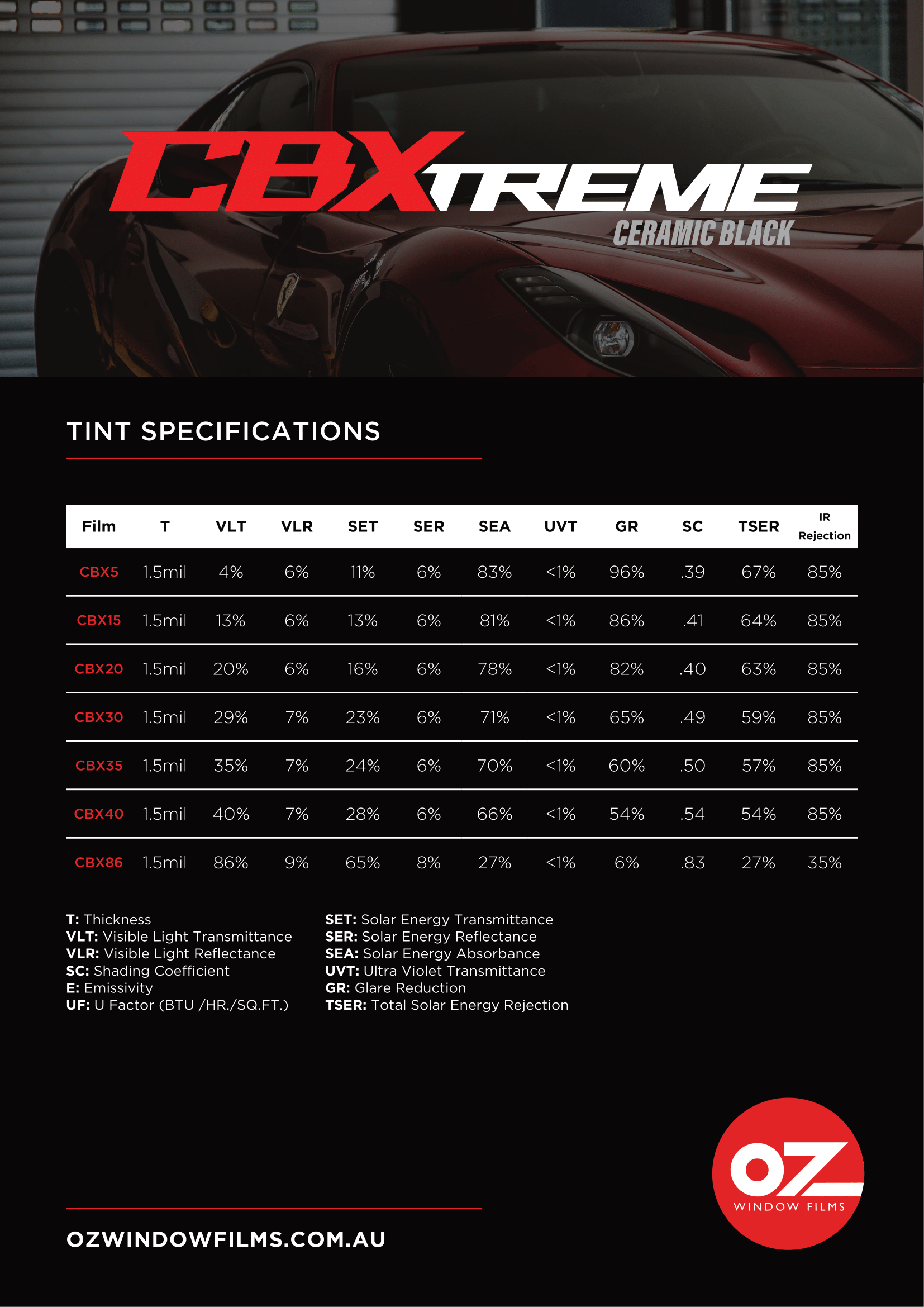 OZ Window Films Ceramic Black Xtreme incorporates ceramic technology to produce a metal free, colour stable window film that is ideal for demanding automotive enthusiasts.