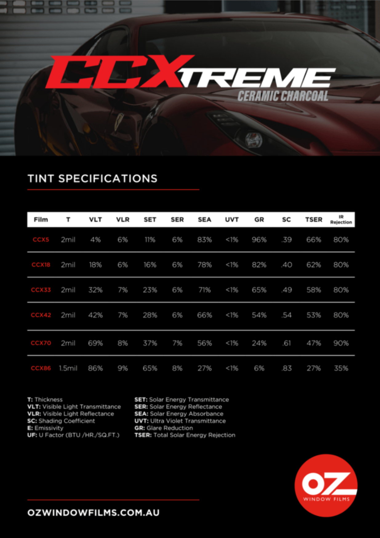 OZ Window Films Ceramic Charcoal Xtreme incorporates ceramic technology to produce a metal free, colour stable window film that is ideal for demanding automotive enthusiasts.